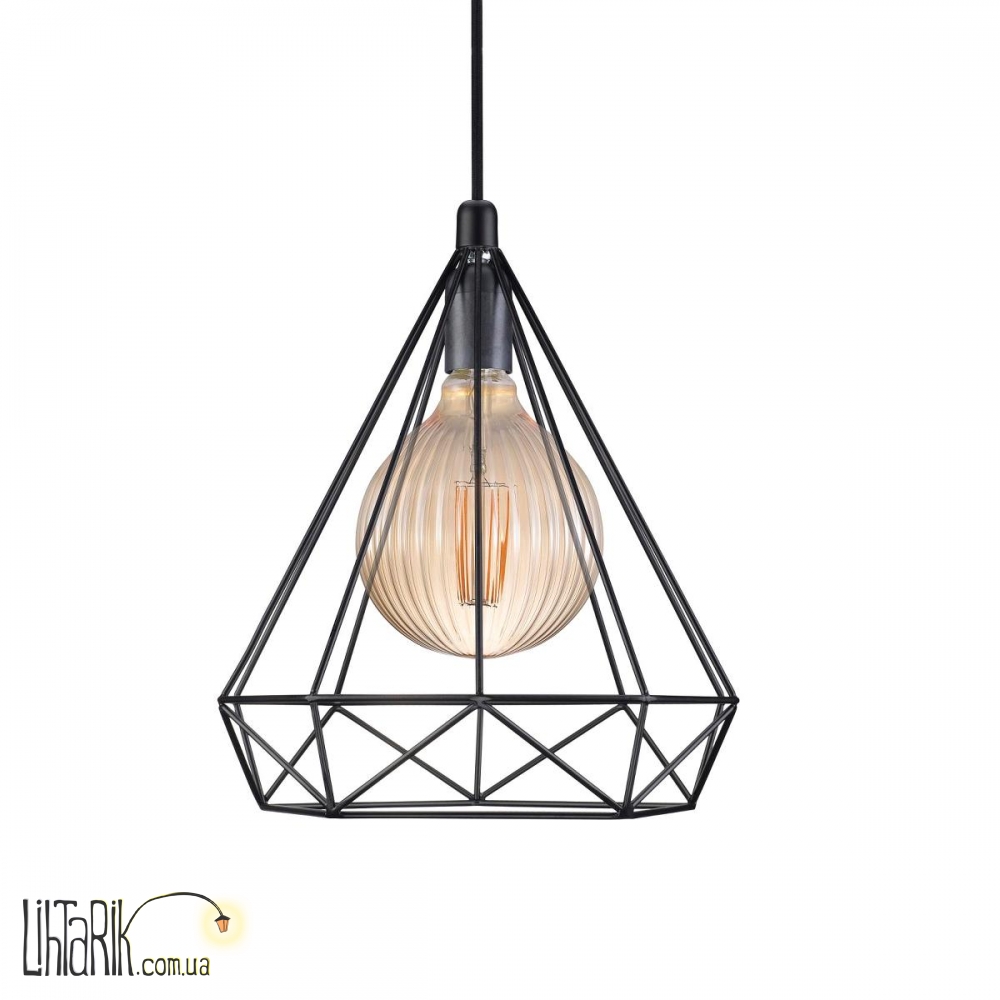 Подвесной светильник, Светильник подвесной с минималистским каркасным дизайном впишется в любую дизайнерскую среду. Подходит для вашей кухни. Модель представлена в черных тонах. Светильник изготовлен из металла высокого качества