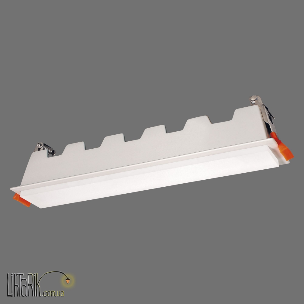 Светильник на потолок с четкими ровными углами впишется в любую дизайнерскую среду. Модель представлена в белых тонах.