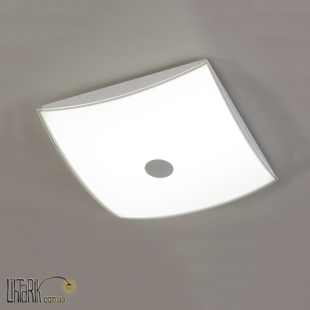 Светильник на потолок с четкими ровными углами впишется в любую дизайнерскую среду. Модель представлена в белых тонах.