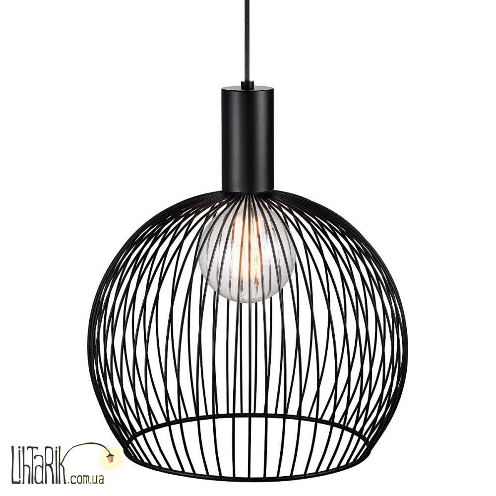 Подвесной светильник, Светильник подвесной с минималистским каркасным дизайном впишется в любую дизайнерскую среду. Подходит для вашей кухни. Модель представлена в черных тонах. Светильник изготовлен из металла высокого качества