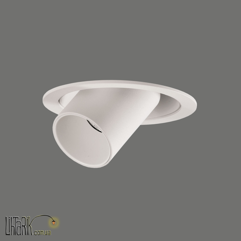 Направленный светильник, Встраиваемый светильник круглого (шарообразного) вида впишется в любую дизайнерскую среду. Модель представлена в белых тонах.