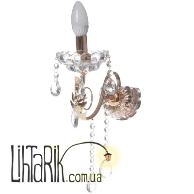Роскошный светильник BCL-658W/1 E14 Fgd в классическом стиле отлично подчеркнет детали любого интерьера. Бра изготовлено из стекла и металла. Благодаря небольшому размеру и лаконичности в оформлении светильника, он подарит вам ощущение уюта и тепла, так как его освещение мягкое и успокаивающие. Конструкция осветительного прибора состоит из металлического золотистого основания, к которому с помощью фигурного держателя прикреплен патрон для лампы, помещенный в стеклянную тарелочку. Внешне конструкция данного светильника напоминает старинный канделябр, вот только вместо восковой свечи источником света служит одна электрическая лампочка с цоколем Е14 мощностью 40 Вт. Дополнительно конструкция украшена подвесками со стеклянными прозрачными гранеными камушками. Свет от лампы, отбиваясь от граней камушков, создает красивые разноцветные блики.