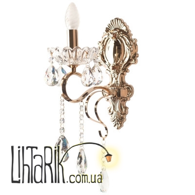 Неподдельным символом истинного классического вкуса и роскоши является бра BCL-667W/1 E14 Fgd от ТМ Brille. За счет способности отражать свет от ламп на гранях камушков, оно станет вашим любимым осветительным прибором в доме. Изготовлено бра из металла и стекла. Конструкция состоит из металлического золотистого основания, к которому с помощью фигурного держателя прикреплен патрон для лампы, помещенный в стеклянную тарелочку. Внешне конструкция данного светильника напоминает старинный канделябр, вот только вместо восковой свечи источником света служит одна электрическая лампочка с цоколем Е14 мощностью 40 Вт. Выбирать лучше лампочку свечевидной формы, с ней осветительный прибор будет выглядеть целостно.