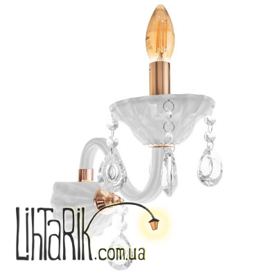 Качественно выполненное бра в классическом стиле BCL-683W/1 E14 WH от ТМ Brille сочетается со всем и всем идет. Ампир, арт-нуво, барокко, готика, несомненно, подойдут для украшения их данным бра. Светильник изготовлен из металла и стекла. Конструкция состоит из металлического каркаса, основания и патрона для лампочки, помещенного в стеклянную чашечку. Дополнительно бра декорировано стеклянными подвесками с гранеными прозрачными камушками. Во включенном состоянии лампы, они переливаются радужными бликами, создавая необычайно красивую игру света. Внешне конструкция данного светильника напоминает старинный канделябр, вот только вместо восковой свечи источником света служит одна электрическая лампочка с цоколем Е14. Лучше всего подойдет лампочка свечевидной формы, с ней осветительный прибор будут выглядеть воистину винтажно.