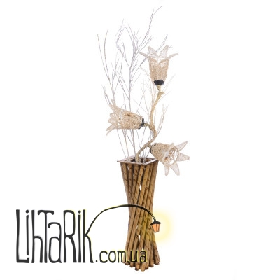 Торшер BKL-300F/3 выполнен в стиле кантри. Это торшер в виде вазы с крупными цветами, которые внешне напоминают колокольчики, цветки сплетены из лозы, вазочка покрыта лаком,на вид нежно-коричневого оттенка. Имитация цветов в вазе придает торшеру неординарности и изысканности. Напольный торшер излучает не яркий свет, который создает уют и мягкое освещение. Торшер высокий, его высота 1460 мм. Он будет гармонично смотреться в комнатах классического дизайна, спокойных, пастельных тонов. Это очень оригинальное украшение для интерьера, которое, несомненно, следует приобрести любителям всего необычного и интересного. Для работы торшера нужны будут три лампочки мощностью 60 Вт с цоколем Е27.