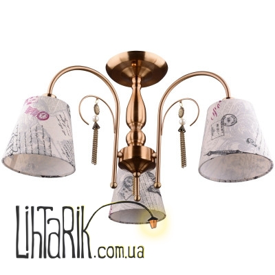 Люстра с абажурами BKL-581S/3 E14 обладает особой способностью привлекать к себе внимание. А все из-за плафонов-абажуров, которые приглушают, излучаемый лампами свет, придавая ему мягкости, а помещению романтической атмосферы. Конструкция осветительного прибора представлена металлическим каркасом цвета старое золото, к которому прикреплено три плафона. Они изготовлены из бумаги, декорированы изображением бабочки и Эйфелевой башни, которые сделают люстру и интерьер эксклюзивными. Каркас дополнительно украшен подвесками с бусинками. Для работы необходимо использовать три лампы с цоколем E14 мощностью 40 Вт. Рассчитана люстра для работы от сети 220 В. Тип крепления – монтажная планка. Хорошо будет смотреться в гостиной или спальне.