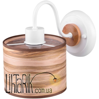 Бра служит дополнительным источником освещения, создающим в помещении комфорт, уют и чувство защищенности. Лучше всего помещать его в спальне, именно тут мы проводим вечернее время чаще всего за интересным чтивом или просмотром фильма. Бра BKL-639W/1 E14 изготовлено из металла и шпона – тонкого слоя древесины с текстурным рисунком (хвойных или лиственных пород). Шпон отличается экологичностью, долговечностью, устойчивостью к влажности. Конструкция представлена металлическим каркасом белого цвета, к которому прикреплен один плафон из шпона. Он выполнен из цилиндра, приглушает излучаемый лампой свет, придавая ему мягкости. Для работы нужна одна лампочка с цоколем Е14 мощностью 40 Вт. Это может быть как лампа накаливания, так и энергосберегающая или светодиодная. Включать и выключать светильник необходимо с помощью настенного клавишного выключателя. Дополнительная информация: Диаметр плафона – 150 мм