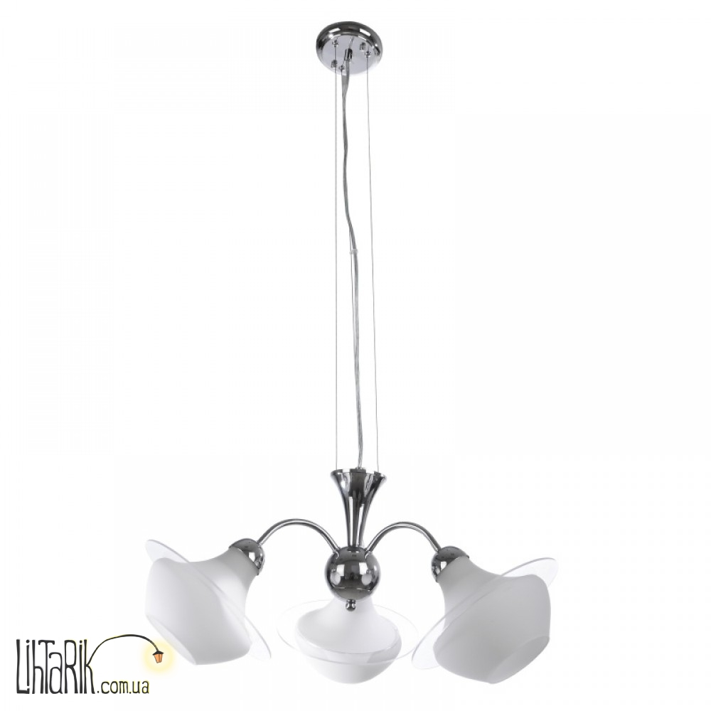 Люстра в стиле модерн BL-289S/3 E27 CH позволит вам рационально использовать пространство и воплотить оригинальные дизайнерские идеи в жизнь. Изготовлена она из металла, стекла и пластика. Конструкция состоит из металлического фигурного хромированного каркаса, к которому прикреплено три плафона. Плафоны стеклянные, белого цвета, декорированы пластиковыми прозрачными кольцами. Люстра излучает мягкий, слегка приглушенный свет, который не будет раздражать глаза и настроит на отдых. Для работы необходимо использовать три лампы с цоколем Е27. Высоту осветительного прибора вы сможете регулировать с помощью металлических тросов. В целом, данную люстру можно определить как гармонию декоративности и функциональности.