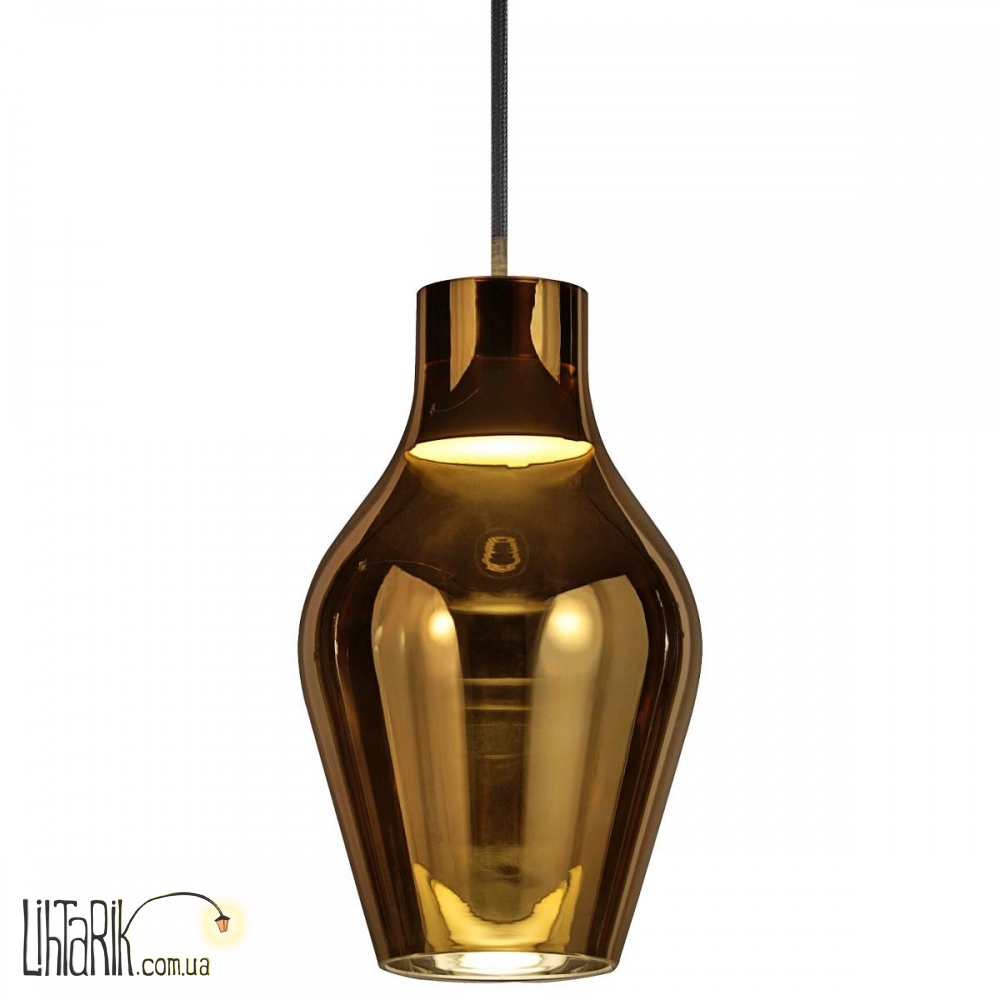 Подвесной светильник, Светильник подвесной колбовидной формы впишется в любую дизайнерскую среду. Подходит для вашей кухни. Модель представлена в золотых тонах. Светильник изготовлен из стекла высокого качества