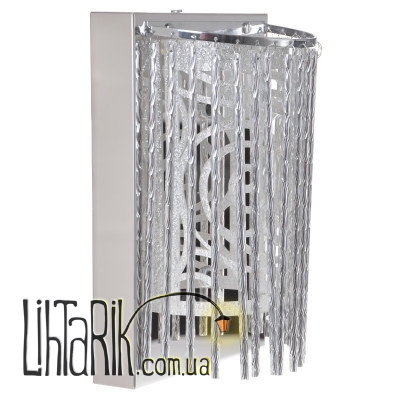 Настенный светильник BR-01 181W/2, изготовлен из стекла и металла, сочетает в себе высокое качество и стильный дизайн. Так как стекло хорошо пропускает свет, то светоотдача от светильника будет максимальной. Он подарит Вашей комнате море теплого и уютного света. Хромированный металл придает светильнику блеск и изысканность. Металлическое основание позволяет надежно прикрепить светильник к стене. Светильник украшен стеклянными гранеными камушками и металлическими подвесками в форме турбочки. Для работы настенного светильника необходимо две лампочки с цоколем Е14 мощностью 20 Вт. Такой замечательный настенный светильник будет отлично смотреться с мягкой мебелью, легкими портьерами и стеклянным столом.