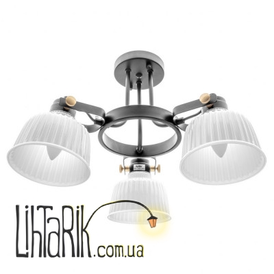 BR-01 463C/3 E14 – потолочная люстра на три плафона. Предназначена для освещения жилых помещений: гостиной, спальни, прихожей, кухни, а также нежилых пространств. Люстра изготовлена из металла и стекла. К металлическому небольшому круглому каркасу черного цвета прикреплено три плафона. Плафоны стеклянные, белого цвета, оборудованы поворотными механизмами. Это позволяет изменять угол их наклона, а, соответственно, и площадь освещения. Для работы необходимо использовать три лампы с цоколем Е14 (накаливания, энергосберегающая, светодиодная).