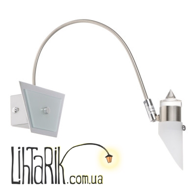 Очень интересное бра, которое выполнено в современном стиле конструктивизм, сочетает в себе нотки хай-тек стиля, оно придется по вкусу любителям всего экстраординарного и необычного. С помощью нашего бра BR-02 351/1 вы с легкостью решите проблему дополнительного освещения, ведь этот настенный светильник светильник способен осветить нужные зоны интерьера и скрыть недостатки отделки. Металлическое основание бра с покрытием матовый никель, а источник света нашего настенного светильника одна галогенная капсульная лампа мощностью 40 Вт. Бра небольших размеров, его высота 275 мм, ширина 240 мм, а длина 140 мм. Оно подойдет для современных интерьеров встиле арт-деко, хай-тек или ноу-хао, с помощью такого бра можно освещать зеркало или интересную большую картину. Совмещать бра советуем с люстрой современного образца.