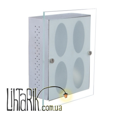 Такое оригинальное бра подойдет для любителей неординарных и нестандартных стилей, придется по вкусу людям, которые привыкли видеть обстановку в своем доме «не такую, как у всех», привыкли выделяться, удивляться и удивлять! Наша модель выполнена в стиле хай-тек, она обладает своеобразным внешним видом, не похожа на обыкновенные бра в таком смысле, в котором мы привыкли их представлять. Основание изготовлено из металла, покрытие матовый никель, свет поступает через застекленные отверстия в виде четырех овалов, расположенных на небольших расстояниях друг от друга. Источником света выступает лампа с цоколем Е14, мощность лампы 60 Вт. Наша модель выполнена в стиле минимализм, ее размеры небольшие и компактные, за счет этого бра будет аккуратно и опрятно смотреться на вашей стене (высота 60 мм, ширина 180 мм, а длина 150 мм). Бра работает с обыкновенной лампой накаливания, свет исходит мягкий и приятный для глаз. Создается романтическая обстановка, которая добавит новых красок и разнообразит ваш интерьер. Кстати об интерьерах. Сочетать такое бра рекомендуем с обстановками современных направлений, типа хай-тек, фьюжн, арт-деко, ноу-хао. Спешите заказать это замечательное и качественное бра уже сегодня по самой доступной цене!