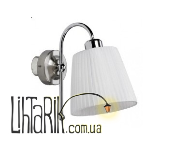 Это бра с оригинальным абажуром впишется в любую дизайнерскую среду. Модель представлена в белых, хромированных тонах. Светильник изготовлен из металла, ткани высокого качества