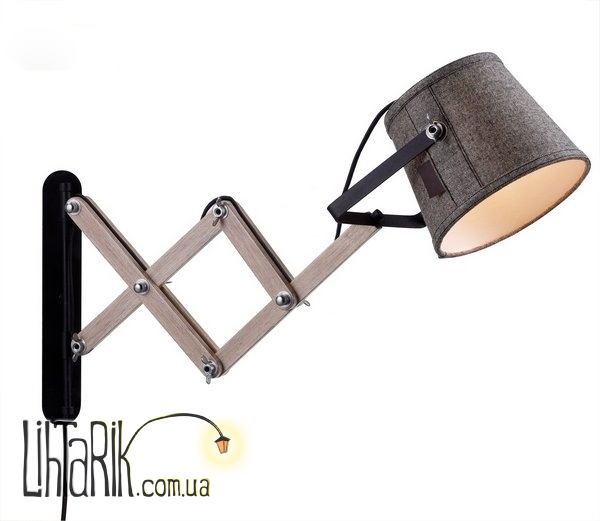 Это бра Модель представлена в древесных, серых тонах. Светильник изготовлен из дерева, ткани высокого качества