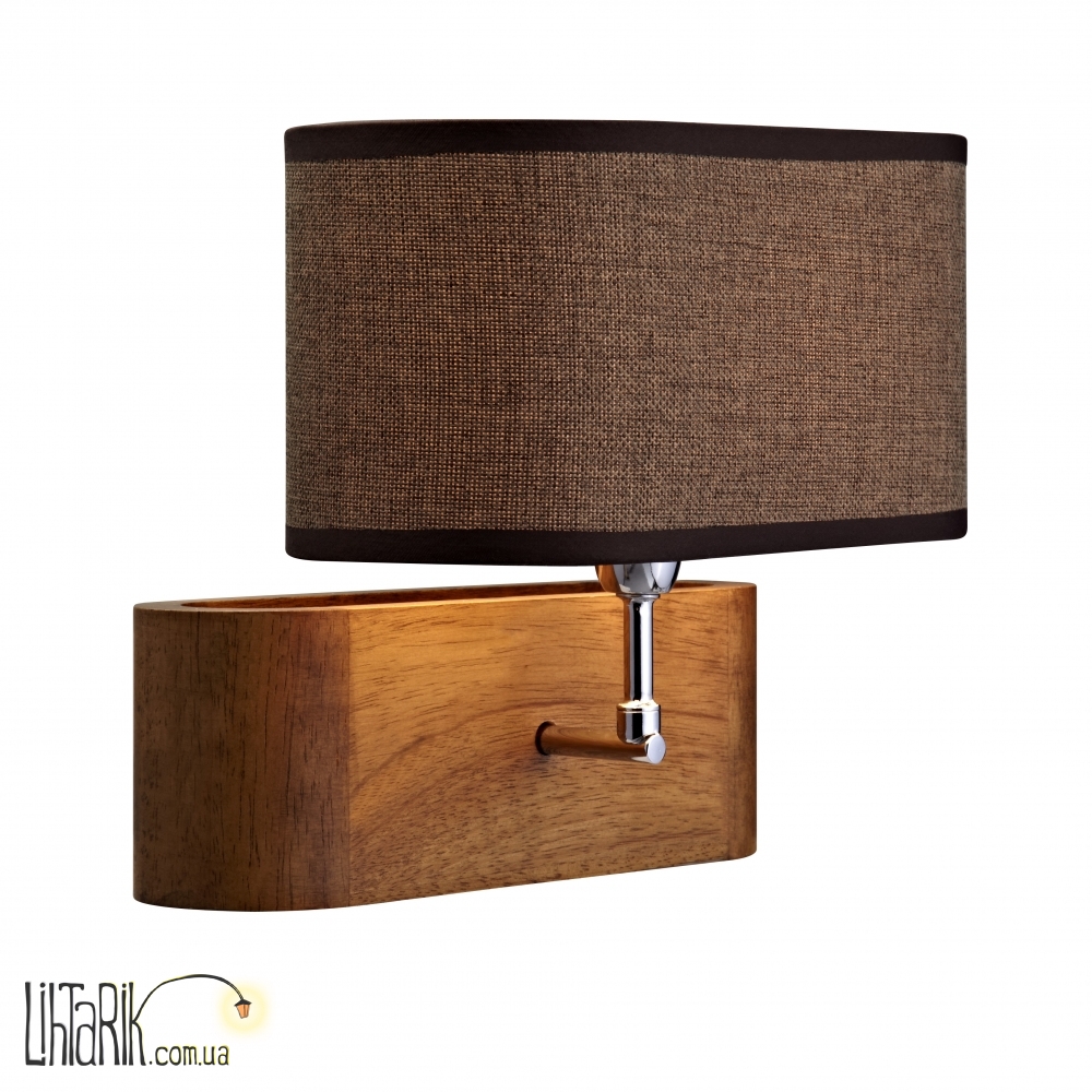 Это бра с оригинальным абажуром впишется в любую дизайнерскую среду. Модель представлена в древесных, коричневых тонах. Светильник изготовлен из дерева, металла, ткани высокого качества