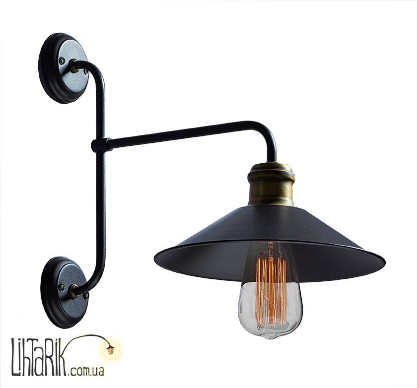 Это бра как плоская тарелка впишется в любую дизайнерскую среду. Модель представлена в черных тонах.
