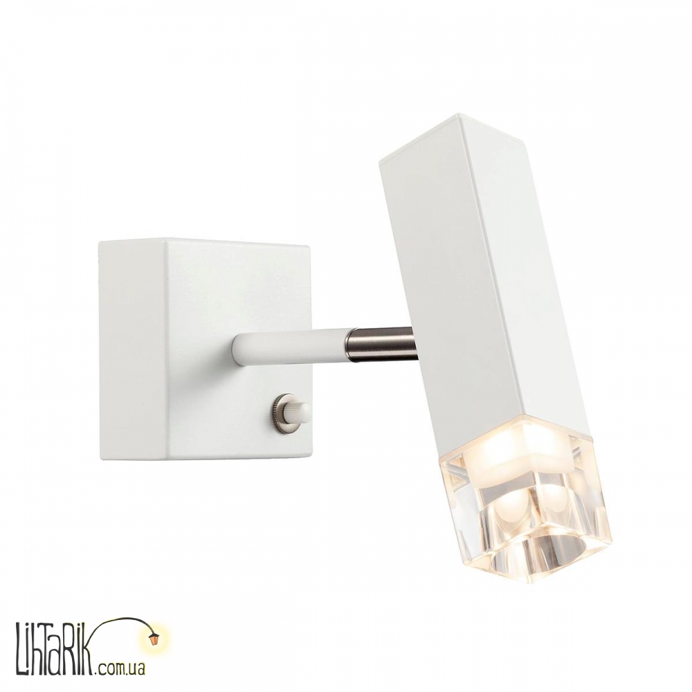 Светильник на стену, Направленный светильник с четкими ровными углами впишется в любую дизайнерскую среду. Модель представлена в белых тонах. Светильник изготовлен из металла высокого качества