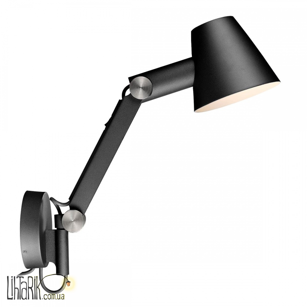 Светильник на стену, Направленный светильник конусообразной формы впишется в любую дизайнерскую среду. Модель представлена в черных тонах. Светильник изготовлен из металла высокого качества