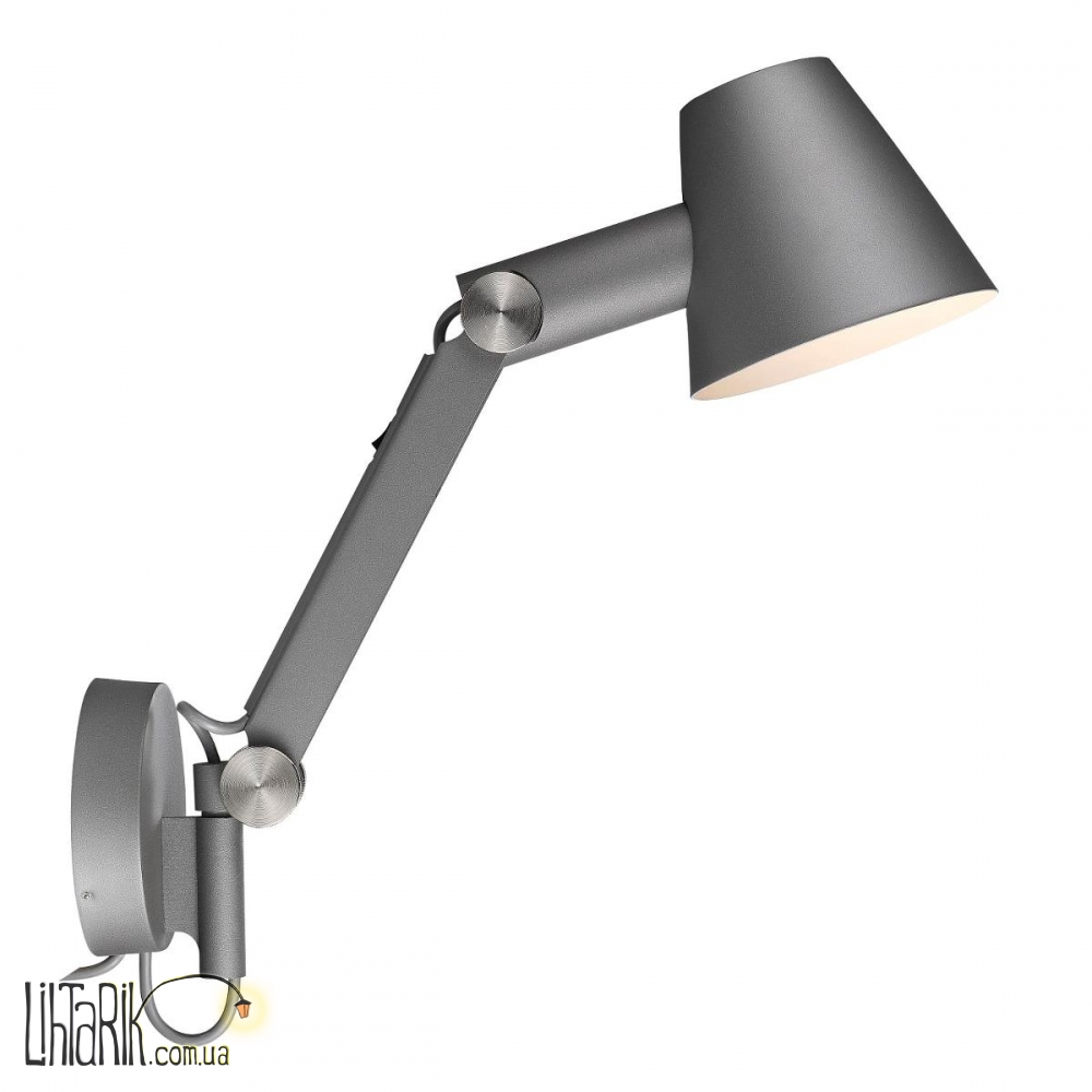 Светильник на стену, Направленный светильник конусообразной формы впишется в любую дизайнерскую среду. Модель представлена в серых тонах. Светильник изготовлен из металла высокого качества