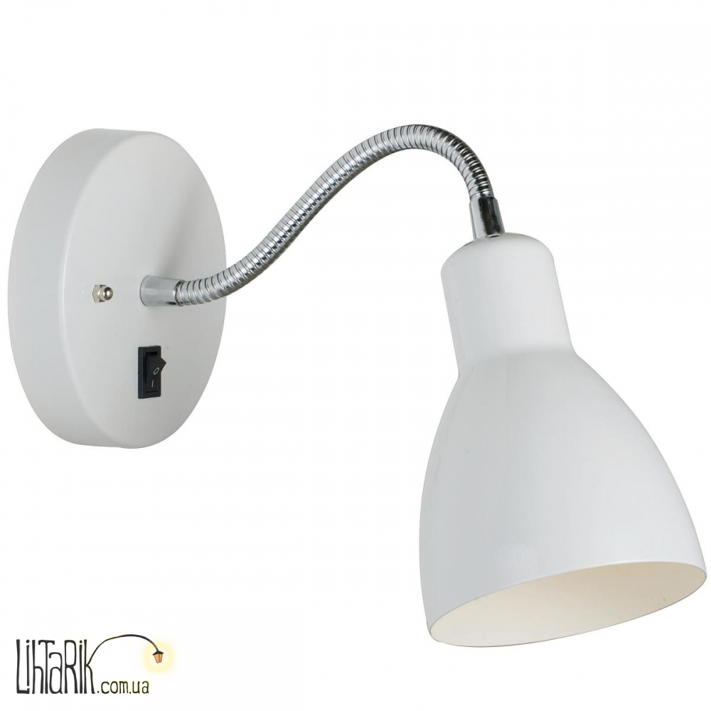 Светильник на стену, Направленный светильник в виде зонта или же купола впишется в любую дизайнерскую среду. Модель представлена в белых тонах. Светильник изготовлен из металла высокого качества