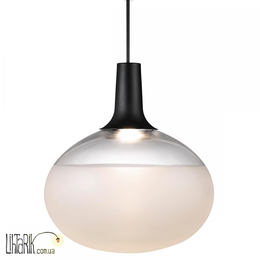 Подвесной светильник, Светильник подвесной круглого (шарообразного) вида впишется в любую дизайнерскую среду. Подходит для вашей кухни. Модель представлена в черных тонах. Светильник изготовлен из стекла высокого качества