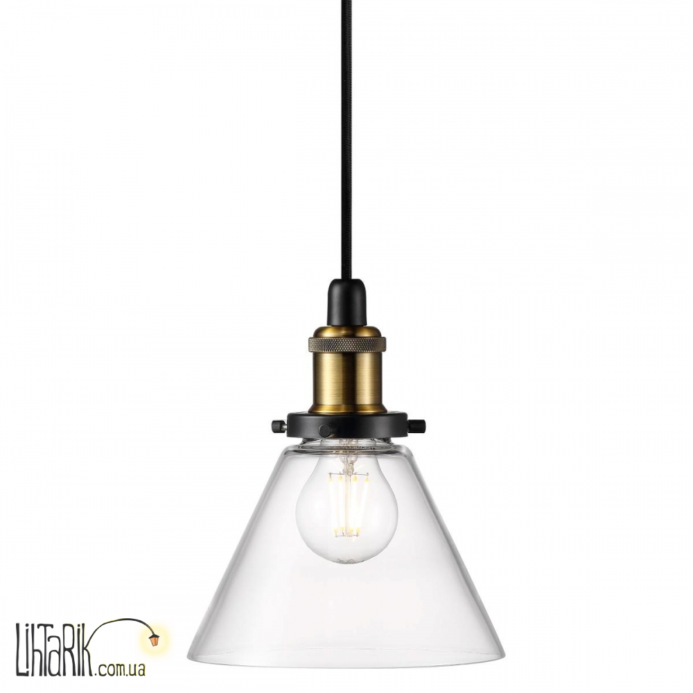 Подвесной светильник, Светильник подвесной конусообразной формы впишется в любую дизайнерскую среду. Подходит для вашей кухни. Модель представлена в прозрачных тонах. Светильник изготовлен из стекла высокого качества