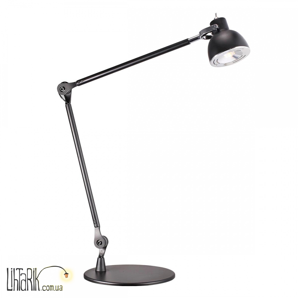 Этот настольный светильник конусообразной формы впишется в любую дизайнерскую среду. Модель представлена в черных тонах. Светильник изготовлен из металла высокого качества