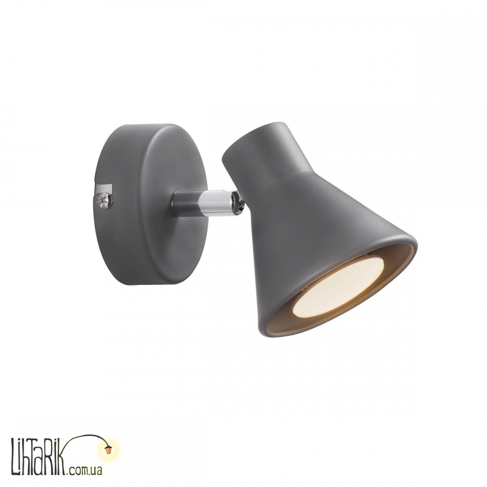 Светильник на стену, Направленный светильник конусообразной формы впишется в любую дизайнерскую среду. Модель представлена в серых тонах. Светильник изготовлен из металла высокого качества