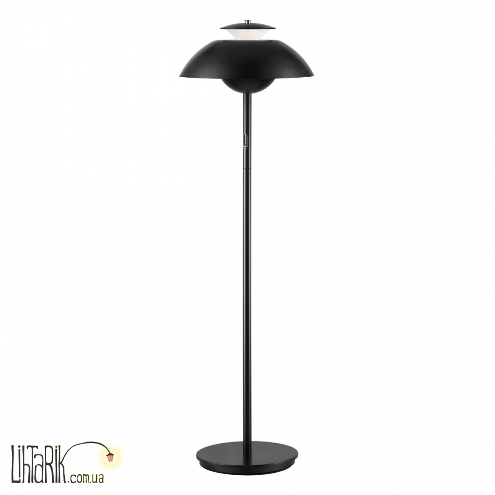 Оригинальный торшер с оригинальным абажуром, в виде зонта или же купола впишется в любую дизайнерскую среду. Модель представлена в черных тонах. Светильник изготовлен из металла, пластика высокого качества
