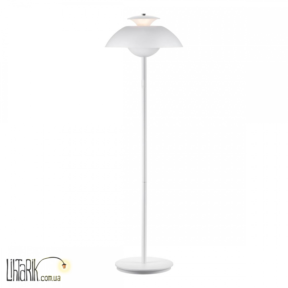 Оригинальный торшер с оригинальным абажуром, в виде зонта или же купола впишется в любую дизайнерскую среду. Модель представлена в белых тонах. Светильник изготовлен из металла, пластика высокого качества