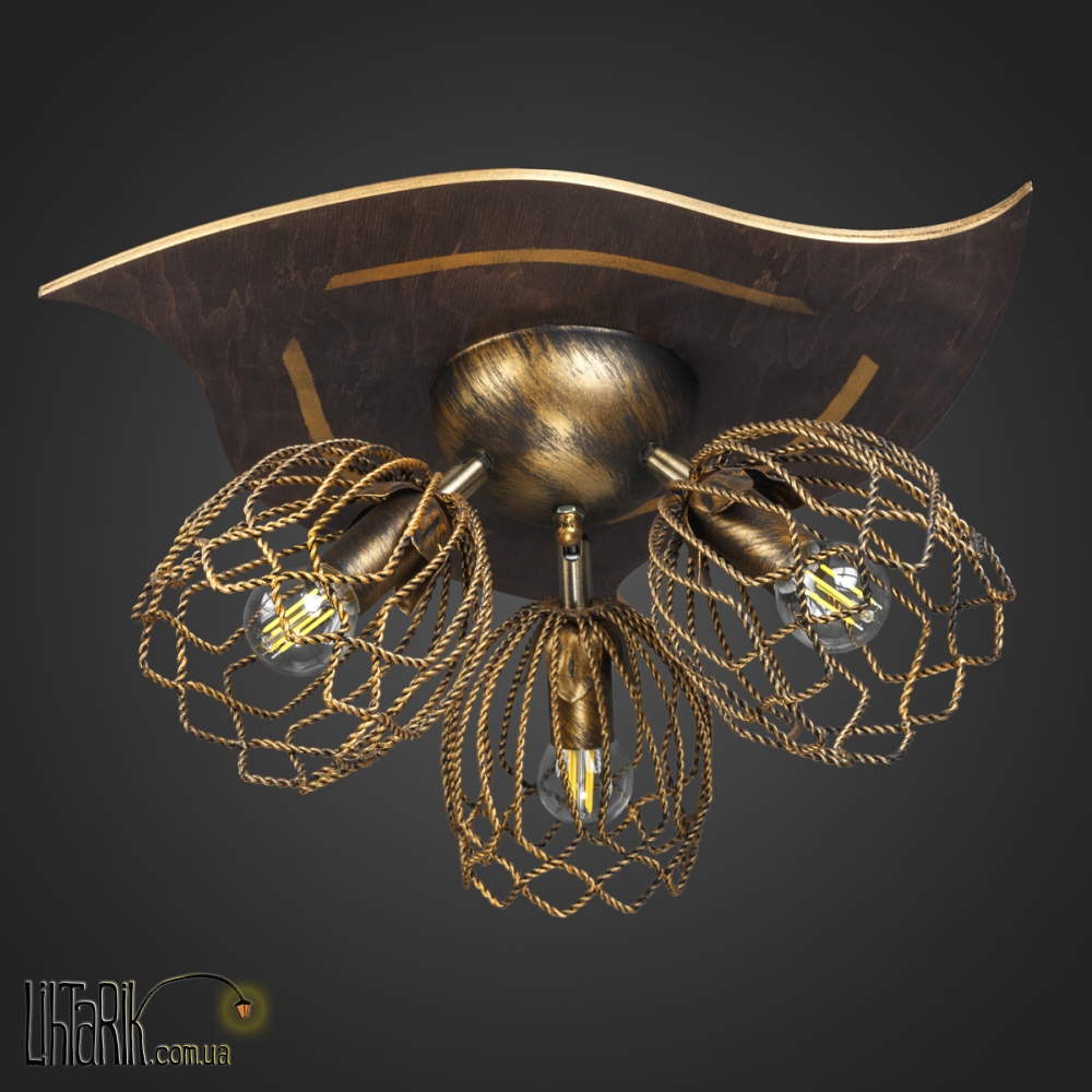 Припотолочная люстра круглого (шарообразного) вида впишется в любую дизайнерскую среду. Подходит для вашей гостиной, кухни, прихожей. Модель представлена в золотых, черных тонах. Светильник изготовлен из дерева, металла высокого качества