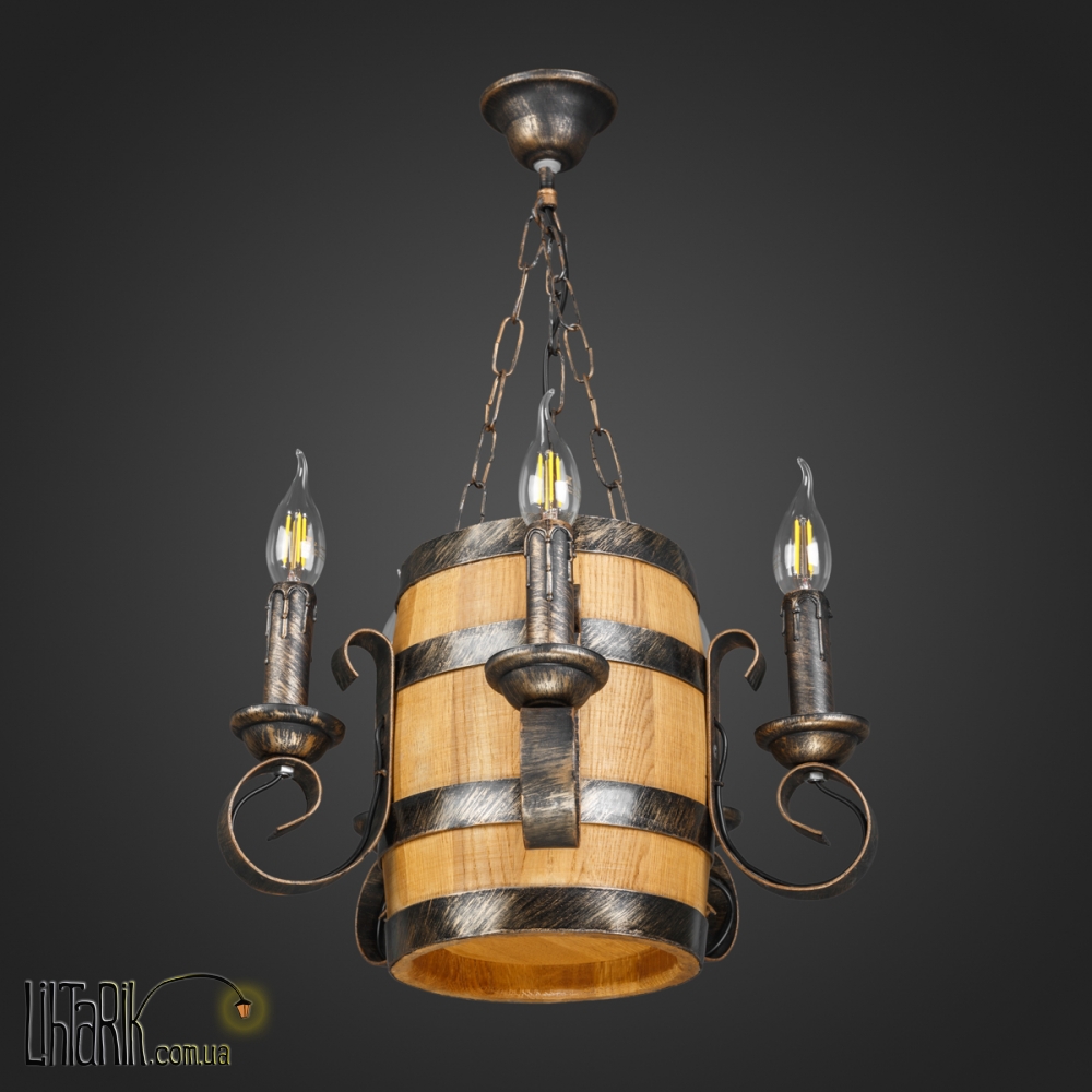 Подвесной светильник бочковидного вида, с рожковыми элементами дизайна впишется в любую дизайнерскую среду. Подходит для вашей гостиной. Модель представлена в бронзовых, черных тонах. Светильник изготовлен из дерева, металла высокого качества