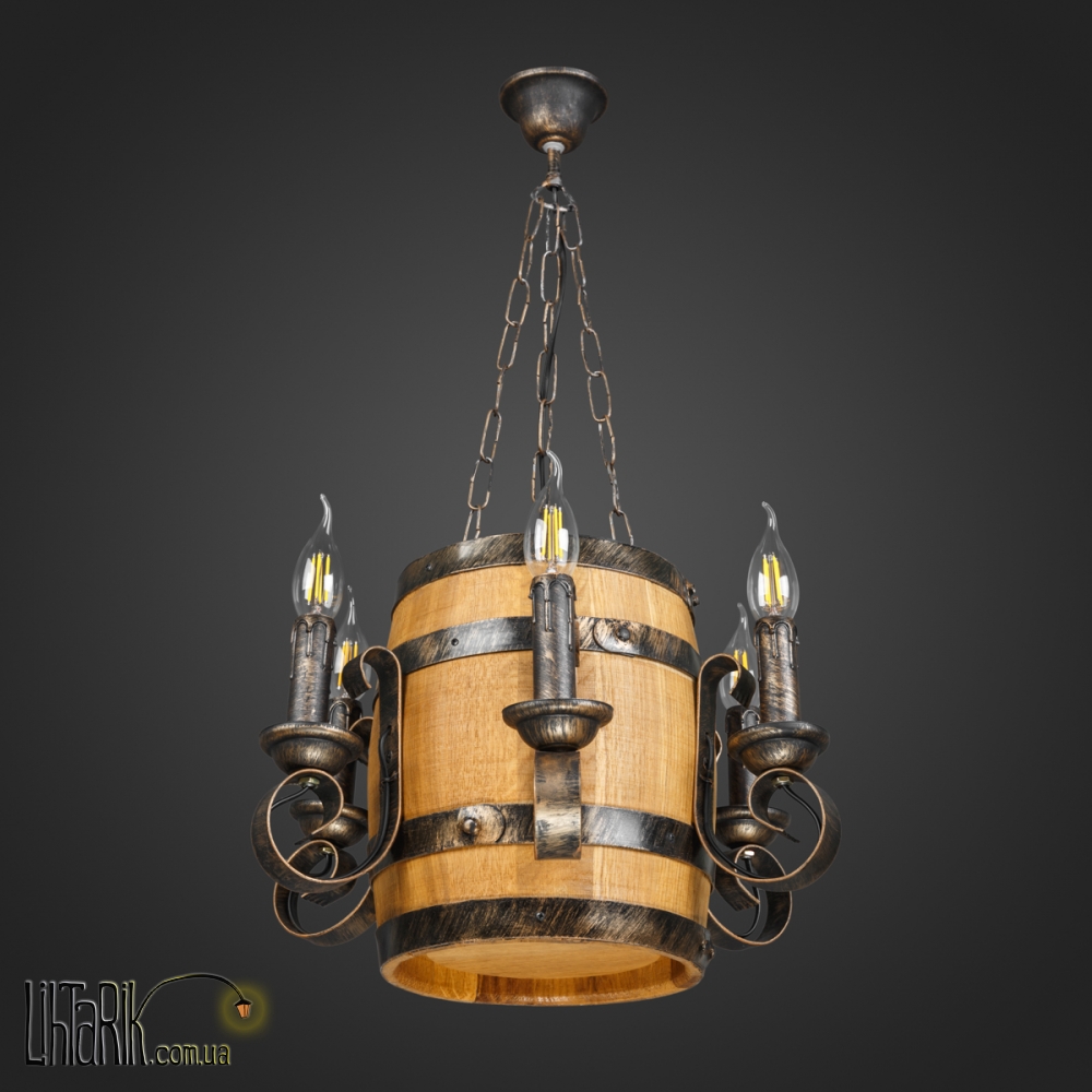 Подвесной светильник бочковидного вида, с рожковыми элементами дизайна впишется в любую дизайнерскую среду. Подходит для вашей гостиной. Модель представлена в бронзовых, черных тонах. Светильник изготовлен из дерева, металла высокого качества