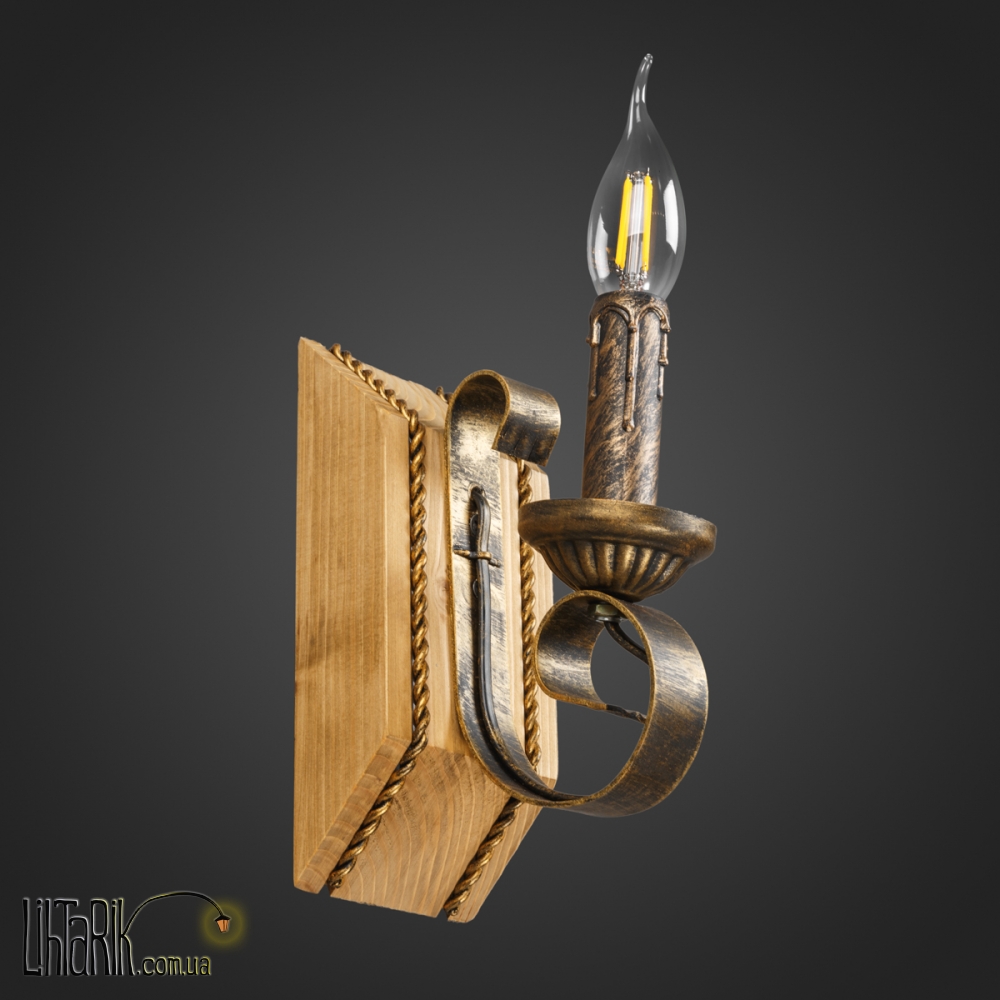 Это бра с рожковыми элементами дизайна, в виде свечей впишется в любую дизайнерскую среду. Подходит для вашей гостиной, кухни, прихожей, спальни. Модель представлена в золотых, черных тонах. Светильник изготовлен из дерева, металла высокого качества