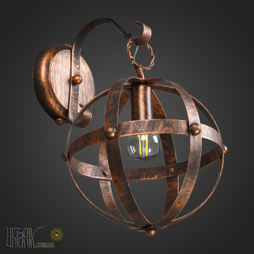 Это бра круглого (шарообразного) вида впишется в любую дизайнерскую среду. Подходит для вашей гостиной, кухни, прихожей, спальни. Модель представлена в медных, черных тонах. Светильник изготовлен из металла высокого качества