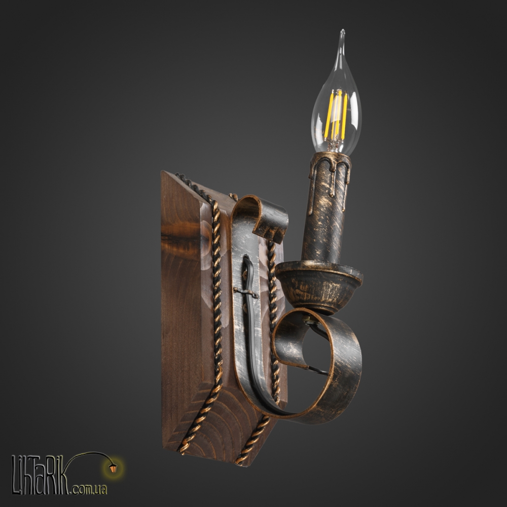 Это бра с рожковыми элементами дизайна, в виде свечей впишется в любую дизайнерскую среду. Подходит для вашей гостиной, кухни, прихожей, спальни. Модель представлена в золотых, черных тонах. Светильник изготовлен из дерева, металла высокого качества