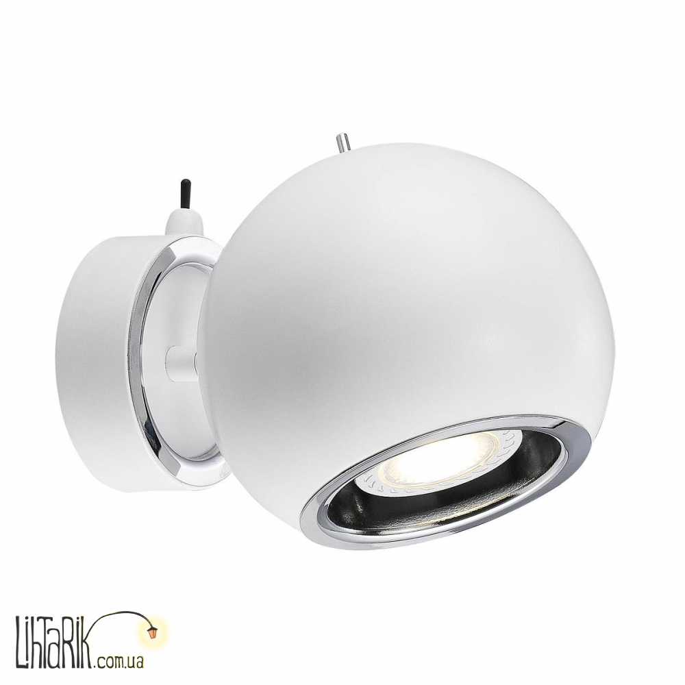 Светильник на стену, Направленный светильник круглого (шарообразного) вида впишется в любую дизайнерскую среду. Модель представлена в белых тонах. Светильник изготовлен из металла высокого качества