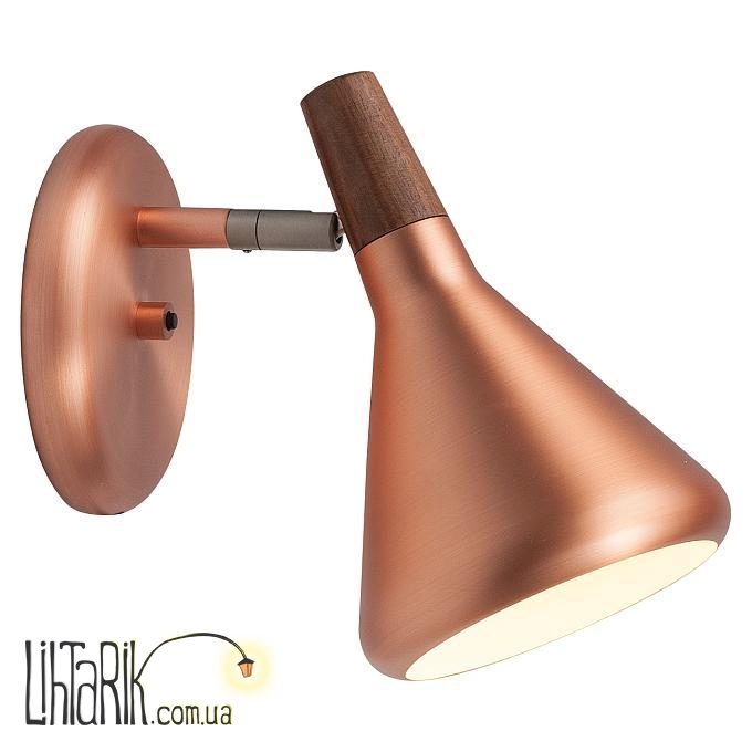 Светильник на стену, Направленный светильник конусообразной формы впишется в любую дизайнерскую среду. Модель представлена в медных тонах. Светильник изготовлен из металла высокого качества