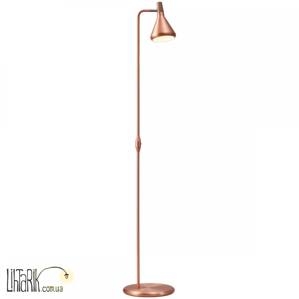 Оригинальный торшер с оригинальным абажуром впишется в любую дизайнерскую среду. Модель представлена в медных тонах. Светильник изготовлен из металла высокого качества