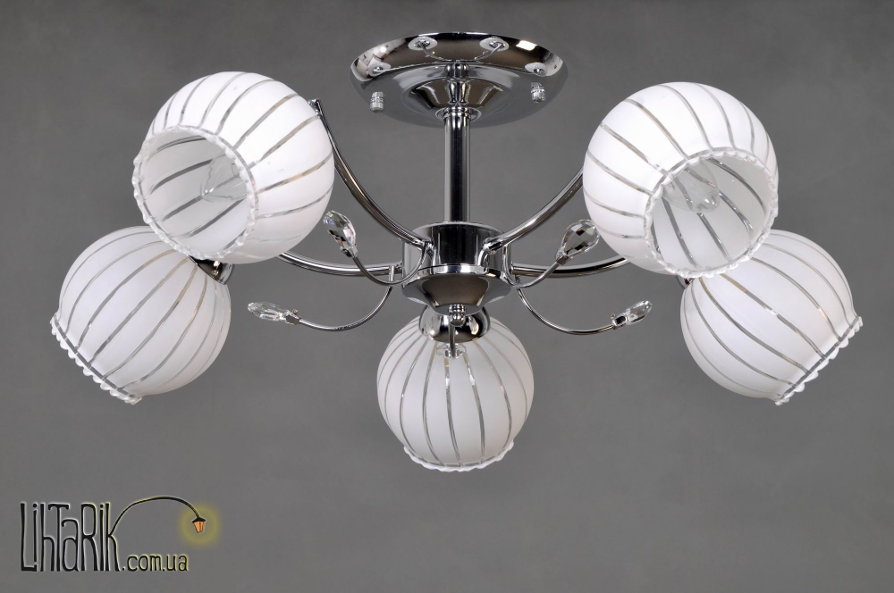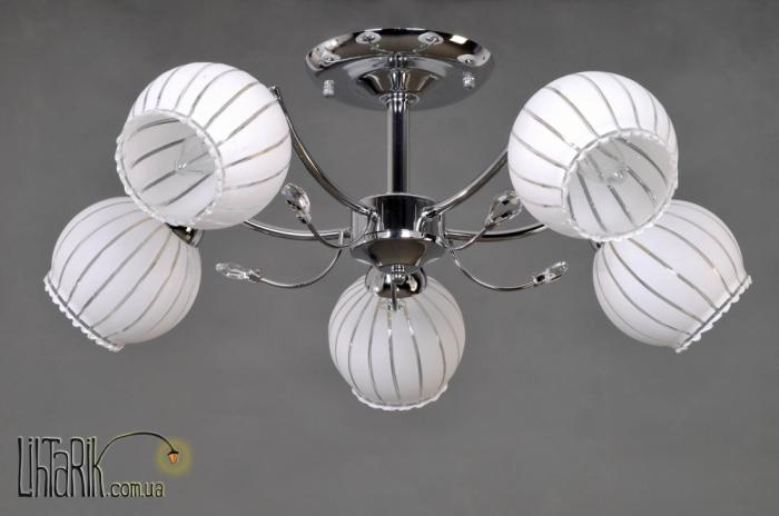 Припотолочная люстра подходит для вашей гостиной, спальни. Модель представлена в хромированных тонах. Светильник изготовлен из металла высокого качества