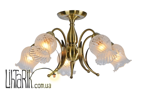 Припотолочная люстра подходит для вашей гостиной, спальни. Модель представлена в бронзовых тонах. Светильник изготовлен из металла высокого качества
