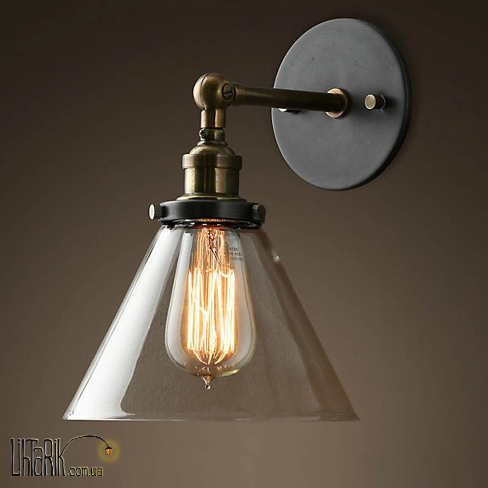 Светильник на стену конусообразной формы впишется в любую дизайнерскую среду. Подходит для вашей кухни, прихожей, спальни. Модель представлена в бронзовых, прозрачных, черных тонах. Светильник изготовлен из металла, стекла высокого качества
