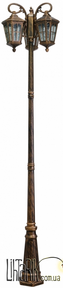 Представляем вам уличный фонарь GL-72 E-3, без него ваш дворик, сад или фасад дома будут выглядеть серо и безлико. Только представьте себе, как вам будут завидовать ваши соседи, ведь ваш приусадебный участок будет гореть яркими огнями в любую погоду и даже в самую темную ночь! Уличный фонарь изготовлен из металла и стекла. Фонарь имеет три стеклянных плафона, декорированных металлическими коваными элементами. Он выполнен в классическом стиле, его покрытие цвета старого золота придает ему ощущение старины. Для работы светильника необходимо три лампы с цоколем Е27. Светильник имеет степень защиты оболочки (IP) 33, что в свою очередь значит, что светильник защищен от проникновения внутрь посторонних твердых предметов и воды. Данный уличный светильник может служить не только в качестве осветительного прибора, но и в качестве декоративного элемента вашего участка. В ассортименте есть также светильник со следующими размерами: высота - 2250 мм, диаметр - 600 мм. Детали уточняйте у менеджера.