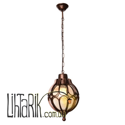 Светильник уличный подвесной GL-94 C способен создать необычайную игру света и тени в красивых уголках сада, местах для отдыха, хозяйственной части приусадебного участка. Ведь с заходом солнца территория возле дома теряет дневную прелесть и превращается в сплошную черную точку. А как же ваши красиво посаженные деревья, роскошные красочные клумбы, мини-фонтан, деревянная беседка, просторная веранда? Им освещение просто необходимо. Только представьте, сколько приятных мгновений вам сможет подарить ваш двор при мягком свете уличного светильника! Но это еще не все. Светильник имеет хорошие технические характеристики: он прочный, ведь изготовлен из стекла и металла, которые не поддаются коррозии, обладает степенью защиты оболочки IP33. Он представляет собой стеклянный плафон в металлической основе коричневого цвета, к потолку крепится с помощью металлической цепи. Для его работы необходима одна лампа с цоколем Е27, рассчитан он на работу в сети переменного тока с номинальным напряжением 220 В.