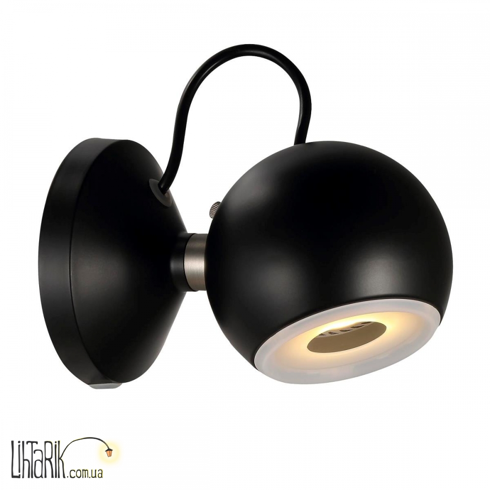 Светильник на стену, Направленный светильник круглого (шарообразного) вида впишется в любую дизайнерскую среду. Модель представлена в черных тонах.