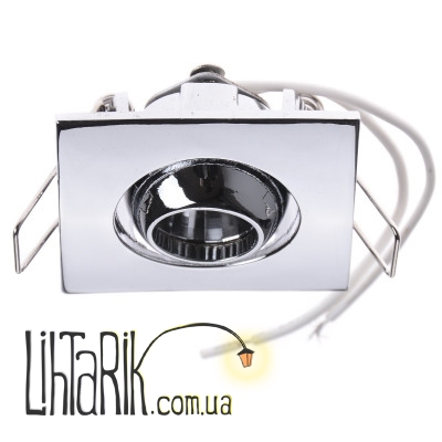 Данная модель точечного светильника немного отличается от остальных светильников. В металлическом корпусе расположен поворотный механизм, благодаря которому можно направлять свет и сделать его акцентным. Эта модель светильника как нельзя лучше подходит для подсветки элементов декора или же освещения отдельных участков помещения. Им можно визуально разделить помещение на несколько световых зон. Источником света в данной модели точечного светильника является одна галогенная капсульная лампа с цоколем G4, которая работает от напряжения 12 В и подключается к сети с помощью трансформатора. Квадратные форма этой модели, с легкостью впишется в интерьер, выполненный в любом стиле.