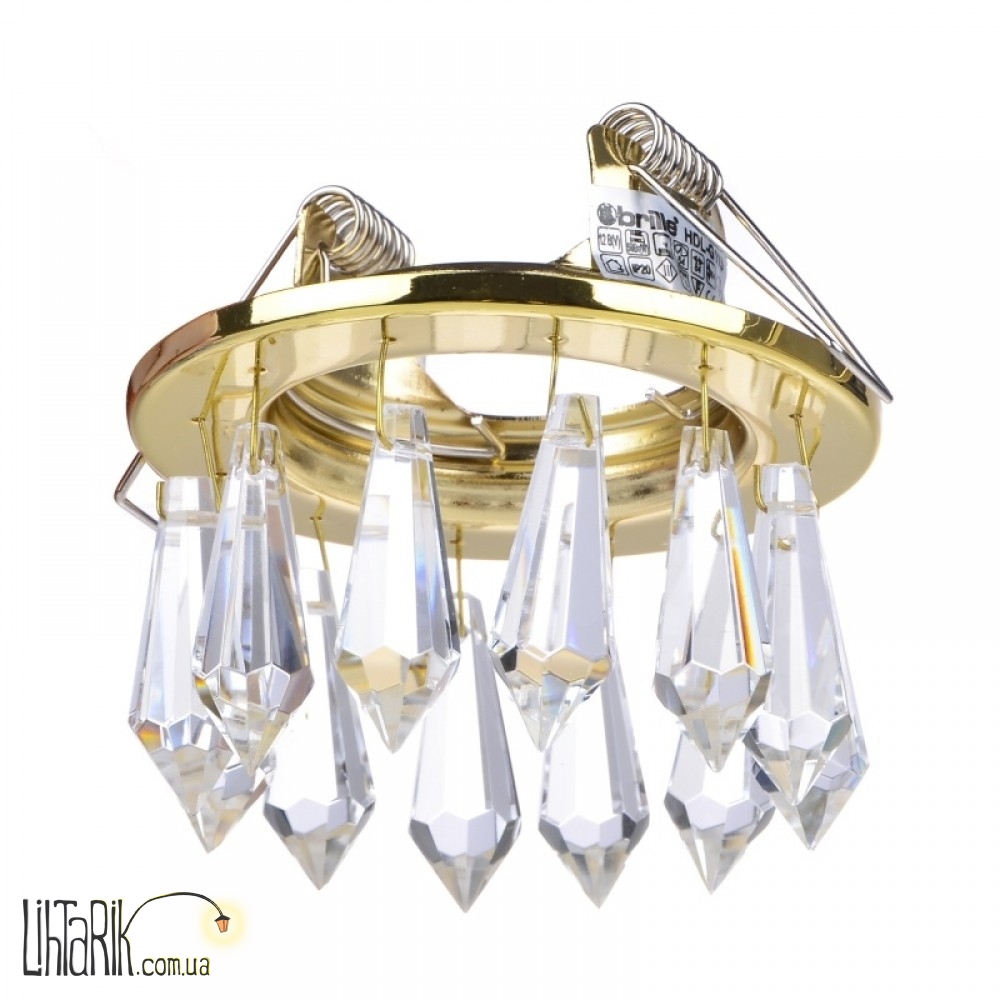 Данная модель точечного декоративного светильника HDL-G115 выполнена из металла. На нем расположено десять стеклянных прозрачных подвесок. Они имеют много граней, за счет чего хорошо отражают свет от лампы. Источником света в нем является одна галогенная рефлекторная лампа с цоколем GU5.3, которая работает от напряжения 12 В которое дает трансформатор. Данная модель предназначена для освещения отдельных участков помещения или подсветки элементов декора. Благодаря его небольшим размерам, у него много способов применения. Он может служить подсветкой таких вещей как зеркала, полки, арочные проемы, картины, статуэтки, декоративные фигуры и так далее. Точечный светильник HDL-G115 дополнит основное освещение и станет частью вашего интерьера.