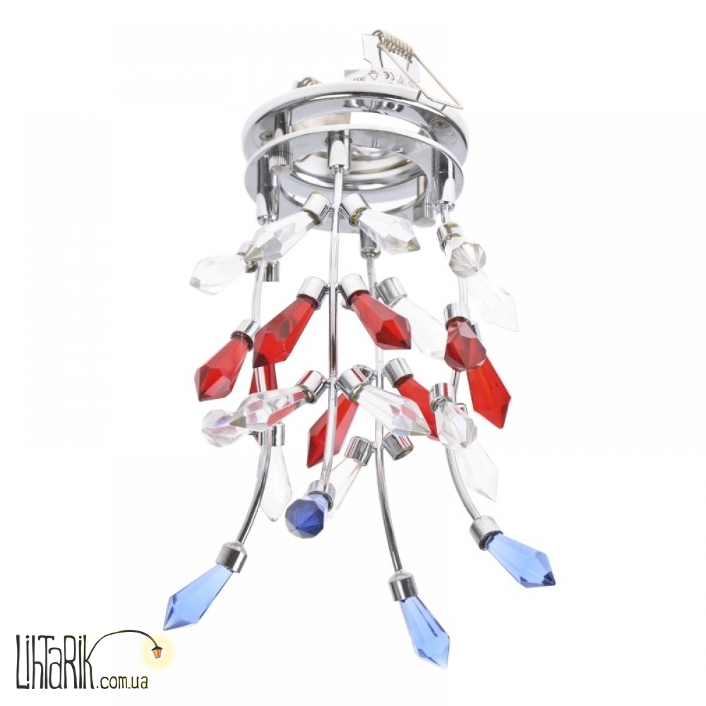 Точечный декоративный светильник HDL-G127 это яркое решение для яркого интерьера. Светильник относится к представителям декоративных светильников не просто так. Его уникальный дизайн будет радовать всех обитателей помещения своим оригинальным внешним видом. Он выполнен из металла, на нем присутствует множество стеклянных подвесок. Стеклянные элементы имеют множество граней, благодаря чему отлично отражают и рассеивают свет от ламп по всему помещению. Источником света в данном светильнике является одна галогенная рефлекторная лампа с цоколем GU5.3, которая работает от напряжения 12 В. Для подключения данного светильника вам понадобится трансформатор. Точечный светильник не может стать основным источником света, но станет отличной подсветкой элемента декора или отдельной части помещения. Этот светильник создаст особую атмосферу, а что бы он вас радовал, его даже включать не нужно.
