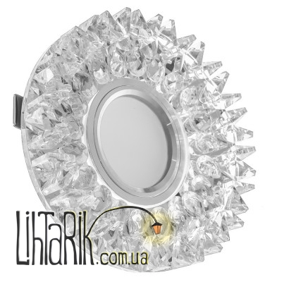 Декоративный точечный светильник HDL-G252 предназначен для дополнительной подсветки всего интерьера или отдельных его составляющих: мебели, полок, арок, зон отдыха или рабочих зон. Каркас светильника изготовлен из металла, окрашен в цвет хром. По периметру декорирован стеклянными, прозрачными, гранеными камушками, которые на солнечном свете или при свете лампы будут переливаться цветами радуги, воссоздавая красивую игру света. Тыльная сторона оборудована металлическими «лапками», которые обеспечат надежное крепление точки на горизонтальной или вертикальной поверхности. Для работы необходимо использовать одну галогенную или светодиодную лампочку с цоколем GU5.3 мощностью 40 Вт (патрон входит в комплект). Светильник рассчитан для работы от сети 220 В (трансформатор входит в комплект).